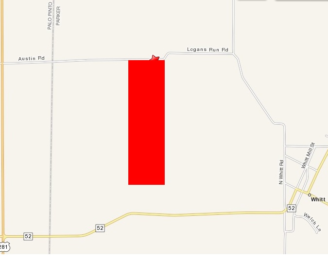 mile to the second lighted intersection, turn west / left onto FM 920 / Fourth Street for 5.2 miles, then west / left onto FM 1885 for 9 miles, then north / right onto FM 52 for 4 miles into Whitt, then west / straight on Main Street for 2/10ths, then north / right onto North Whitt Road for 1.2 miles, then west / left onto Logans Run Road for 3/4ths mile and the property is on the south / left side.