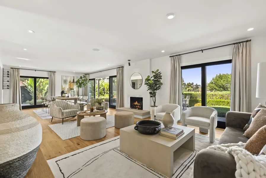 This absolutely beautiful, light filled, one-level home sits just behind the coveted Laurel Hills neighborhood and Mulholland Tennis Club. The location features the wide streets that everyone loves and easy access via Mulholland and Laurel Canyon. It's perfectly suited above the road with privacy and lush canyon views. Enter through an expansive gated courtyard that takes you to the covered front door and formal entry.... that entry flows into the stunning open plan interior with wood-burning fireplace and walls of glass. The home underwent a comprehensive renovation and features wonderful finishes inside & out. At the driveway you're greeted by a solid wood carriage house garage door and inside you have wide plank flooring, wood exterior doors, dramatic skylights, paneled walls and thoughtful built-ins. A perfectly appointed chef's kitchen with moveable island & seating is where everyon...