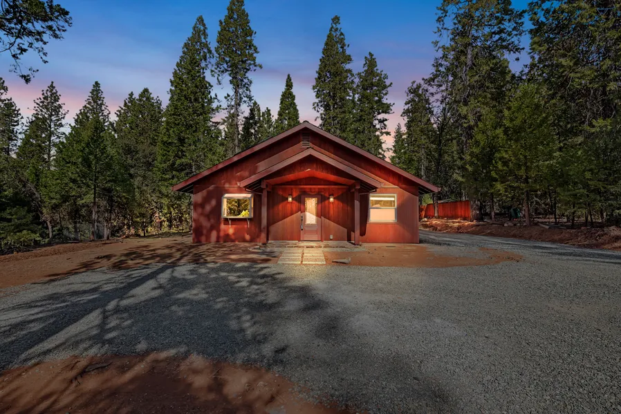 Stepping onto the stone porch and into this inviting home you will find a mix of rustic charm and modern amenities! The kitchen truly stands out with its Hickory cabinets, granite counters, and stone backsplash. The garden window brings in natural light, and the bar offers a perfect spot for casual dining. The great room with beautiful laminate flooring and a cozy woodstove surrounded by stone and leathered granite hearth for a unique texture and depth, making it an inviting focal point. This space is ideal for gathering around the fire on cool evenings. The bedroom is a peaceful retreat, conveniently located near a beautifully designed bathroom with a walk-in tile and stone shower. The addition of an inside laundry with cabinets is a practical touch, making everyday tasks easy and organized. The covered back patio with stone flooring is a perfect spot for enjoying the outdoors in comfort. The one car garage has a huge metal sink and easy-care epoxy flooring. Owned SOLAR with back-up battery makes this adorable home even more appealing and energy efficient. The adjacent home is also for sale and, with the shared driveway with that neighbor, these two homes are ideal for multi-family living or close friends who want to be near but maintain separate spaces.