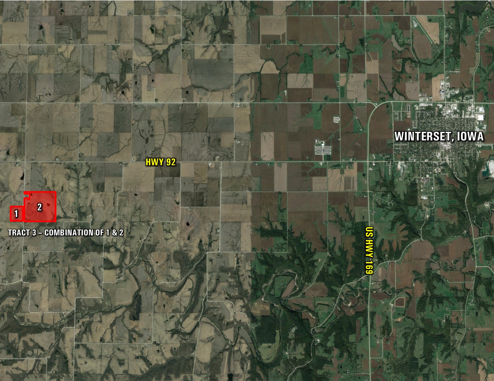 Research Parcel InformationFrom Winterset, Iowa: Travel west out of Winterset, Iowa on Highway 92 for 6.4 miles until Elmwood Avenue. Turn left (south) on Elmwood Avenue for 1/2 mile and farm will be located on both sides of the road. Look for signs.