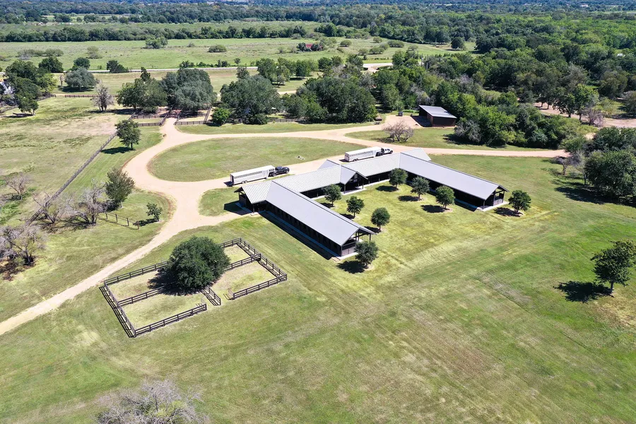 The 24-stall barn, constructed in 2015, and the three additional guest houses or foremans house are laid out perfectly for privacy and security while ensuring the barn, trails and wildlife are steps away. The house includes a Wolf 36 range, a Subzero 48 fridge, Bosch Dishwasher, Hoshizaki Sonic Ice nugget icemaker, and Whirlpool Washer and Dryer. The barn was designed to maximize the cooling of stalls through chimney effect and alignment with prevailing breezes. Its equipped with Rocking J stalls, air-conditioned tack rooms, a utility room, and a bathroom. The utility room is stocked with a washer, dryer, and a Koolaire commercial ice maker, along with an unconditioned feed room.