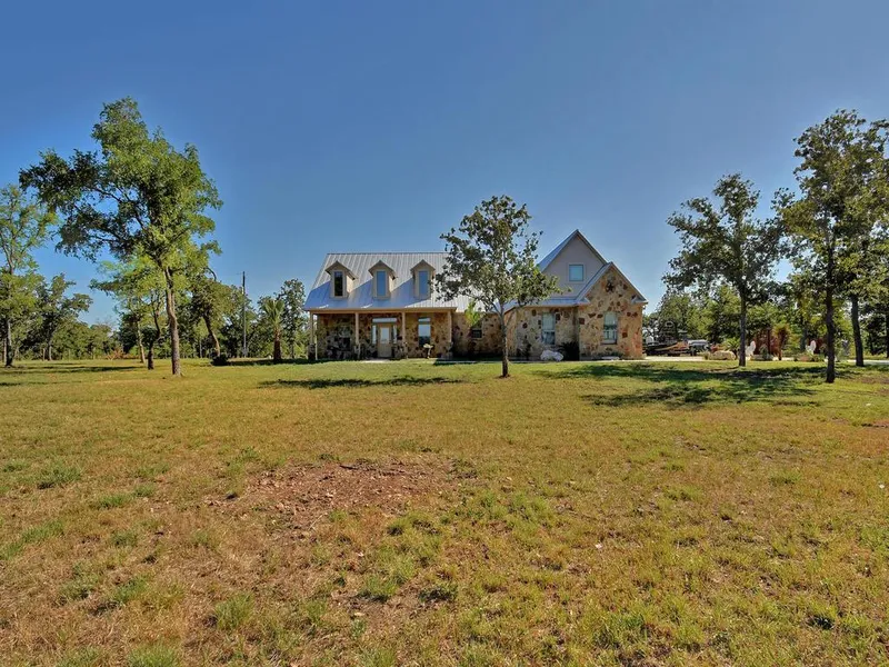 A nice, corner lot with custom 2015 built 3/2.5 home with a few upgrades. The home is sandstone rock on all four sides and even has some accent sandstone on the interior. Kitchen has a 5 burner propane cooktop & a copper farmhouse, apron type sink, a wood burning or LPG fireplace in the great room and the master bath sports a sizable walk in shower. The property is scattered with beautiful Live Oak & Mesquite trees which supports more privacy from neighbors. Easy commute to Austin, SM or Lockhart.