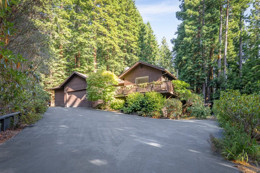 Surrounded by magnificent redwoods and vibrant clusters of rhododendrons, azaleas, and camellias, this expansive property offers a tranquil escape with a private labyrinth and numerous outdoor vistas. Nearby, you'll find easily accessible trails, the Timber Cove Resort, and several popular wine tasting rooms, providing a variety of activities for all interests. The home's large, airy great room seamlessly connects to outdoor spaces. The open-concept design ensures a natural flow between the living and dining areas and the kitchen, ideal for gatherings. The kitchen features new appliances and a breakfast bar, perfect for entertaining or quiet mornings. The office provides a dedicated workspace, while the primary bedroom offers direct access to a private deck. The main bathroom includes a dual vanity, a soaking tub, and two walk-in closets. A laundry room adds functionality. The property h...