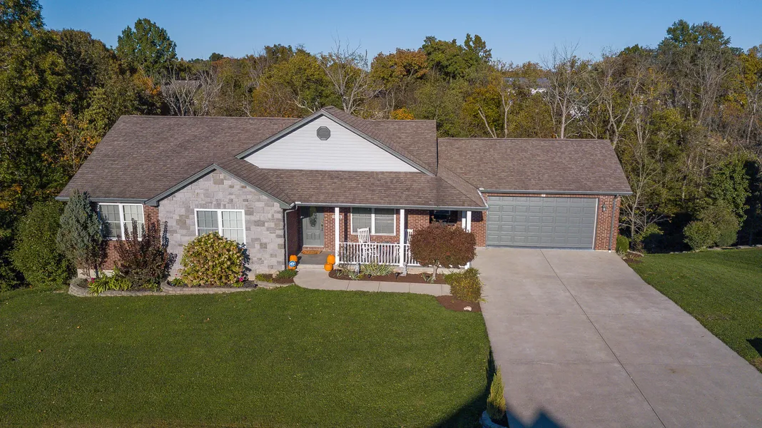 Dont wait on this one!! Charming front elevation features brick and stone with a welcoming front porch and attractive landscaping Inside, vaulted ceilings encompass the Great Room, Dining area and kitchen, and designer paint colors enhance the space. Warm cherry hardwood floors through the foyer, Great Room, Dining Room and hall create a nice flow in the formal areas, while pretty and practical ceramic tile flooring unifies the kitchen, powder room and laundry. 3 bedrooms/2.5 baths up, plus a fully finished walk-out lower level featuring a huge family room w/ fireplace, bedroom, full bath, wet bar and multi-purpose room currently used as an awesome teen retreat! Add a 23x24 storage room under the garage, plus maintenance free outdoor living spaces on both levels! Special touches include stone facing over any exposed foundation and a huge paver patio in addition to two decks. Wooded setting in the rear provides privacy. A total of 4BR/3.5 baths, 3,392 finished square feet on two levels. A great buy!