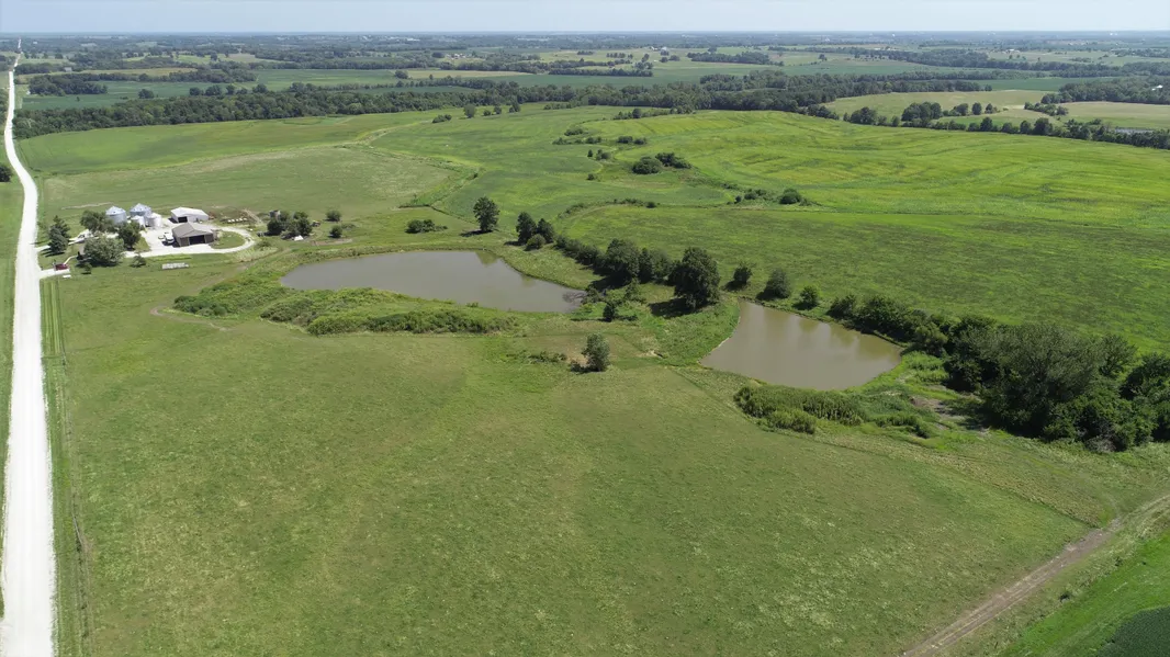 This complete farm operation includes: 226+/- total acres, 61,000 bushel grain storage, 6660 cattle barn with exceptional corral (two waterers on city water), 5472 implement shed with full power, concrete floor, & bathroom, two ponds (stocked & deep), established food plot in SE corner, and new fence/gates around all the pasture. Currently, 140 of the 197.63+/- FSA tillable acres are leased to a local farmer on a year to year agreement (the farmer would like to stay if given the option). The bins are also leased at a rate of $10,980 annually. The tillable acres lay good, offering a nice combination of upland and creek bottom with solid class II & III soils with an overall NCCPI rating of 68, above the county average. Much of the remaining acres are utilized for pasture by the owner, offering exceptional fence, gates, corral, an cattle barn. There are two waterers in the corral and a third gravity fed behind the big pond. The pasture would easily convert to row crop should a new owner choose this option.