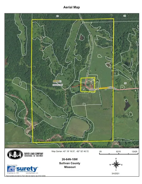 This is a great hunting and investment property located in the right area. This 225 m/l acre tract is located just north of Greencastle Mo off Highway D. Sets on a dead-end road and lays right in the middle between Dark Hollow and Spring Creek Ranch Conservation Areas. Lying dead smack in the center of big buck and long beard turkey country. Along with great hunting farm also has close to 100 acres of tillable consisting of a lot of creek bottom ground to the south and rolling hills to the north. Has a 50/50 crop share lease on the tillable acres. Farmer has been consistently been producing large yields which is very beneficial to the landowner and tenant. Property is located just a few miles from Kirksville Mo which has all the amenities you could ask for. If you are looking for best of both worlds give Jason Courtney a call at 816-654-2144 or Andy Boyer 636-295-1476. *Property lines are thought to be accurate but are estimated. *