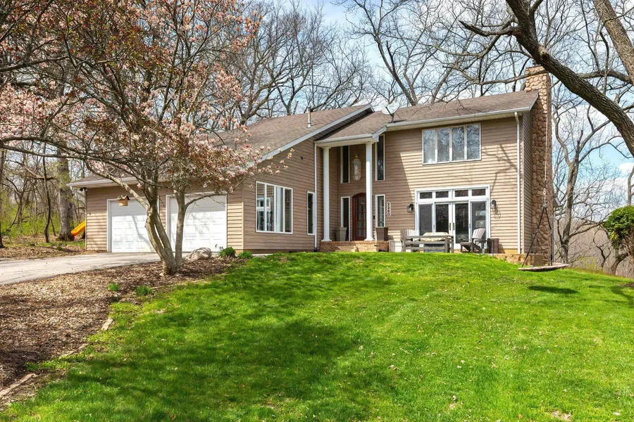 Gorgeous 3 bedroom, 3.5 bath nestled on over 8 acres of wooded land. Main level offers spacious kitchen with large island, home office with built-ins, and cabinetry. Open living and dining room features hardwood floors, large windows, and natural light that over looks the property. Cozy library area with more built-ins and fireplace. Enjoy the updated staircase and new carpet on the second level. Master suite is a must see, with huge walk in closet and master bathroom. The finished lower level contains a rec room, 2nd fireplace, and plenty of storage space. Don't miss out on this outstanding property!!!