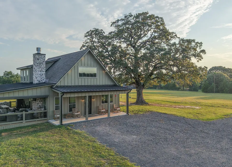 At the heart of the property sits a beautiful three-bedroom, three-bathroom home. The home sits on a hill overlooking the land, offering expansive views of the rolling hills and treetops. The custom home is designed for daily living with the perfect touch of antique country charm. A large covered porch overlooks the swimming pool and provides a place to relax, while the adjacent basketball and pickleball court adds recreational value for family and guests.