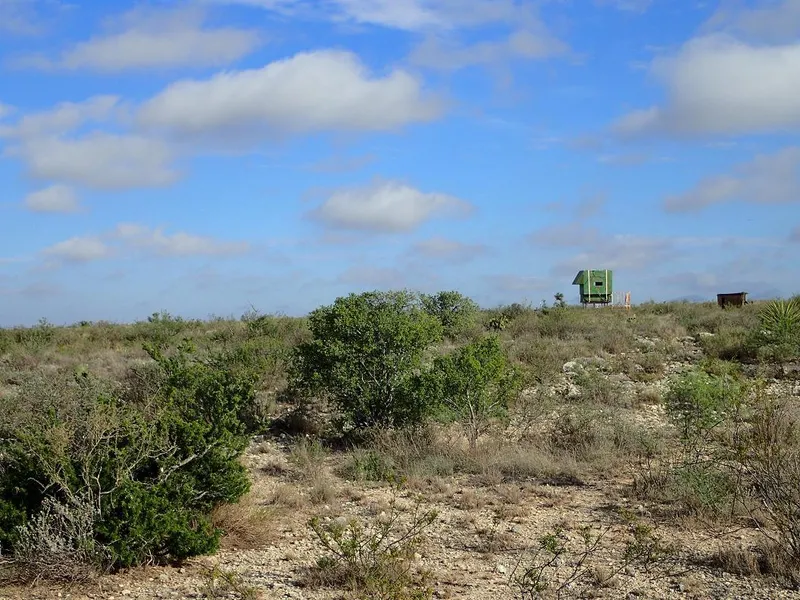 -- UNDER CONTRACT -- 229.73 acres with cabin about 20 minutes off the pavement north of Dryden in Eightmile Draw Ranch. Nice looking brush country - mostly whitetail in this area, but a few mule deer as well. Includes 20-ft shipping container, game feeders, hunting blinds, Honda water pump, water tanks, and building materials on site to help finish out the cabin. Access to subdivision water well about a half mile up the hill.