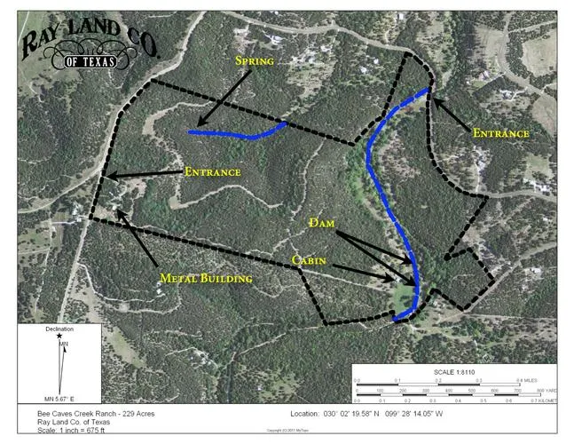 The creek bottom creates it's own unique ecosystem with a large variety of huge native trees. A high bluff overlooking the creek would make a great homesite. This property has a great topography with tons of cover for the native and exotic animals that call this place home. The mix of oak and cedar in the hills provides for beautiful Fall foliage. There are 7 tracts that are already platted along Fallow Run/Big Buck and Bee Caves Creek that could be sold individually. The lots are located in ...