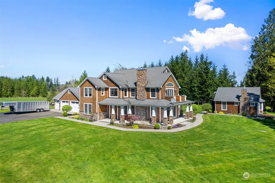 Exceptional home on secluded 20 acres overlooking the North Fork Toutle River offers panoramic views of Mount St. Helens, abundance of wildlife & privacy. This custom-built 3600 sq ft home nestled in the rolling green hills of Toutle Valley boasts incredible craftmanship and classic high-end finishes. Featuring hardwood floors, custom cabinets, 2 primary suites w/private balcony, & large chef’s kitchen w/ top-of-the-line appliances. Matching 2-bedroom, 1-bath ADU is equally well-appointed and perfect for multigenerational living. Fully fenced w/high-quality pasturelands & 2500 /- sq ft barn—this property is ready for horses, cattle, or your favorite off-road toys. Relax & enjoy the beauty surrounding you w/ this classic country estate.