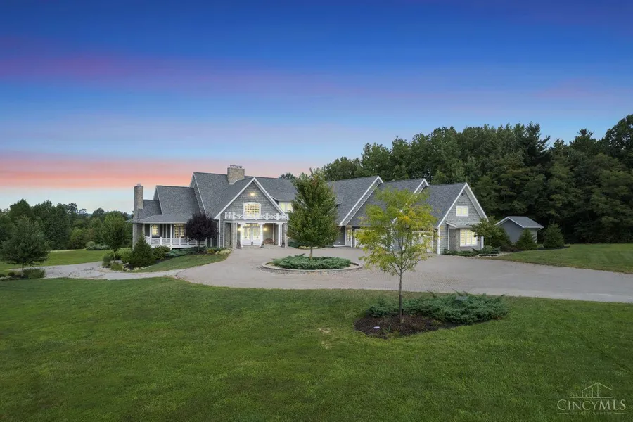 Exquisite rural estate combines beautiful, private 23.6 acres and a stunning main home w/over 10,000 square feet of luxury living! A perfect blend of comfort and elegance, the massive stone fireplace in the hearth room is reminiscent of a cozy lodge while the living room evokes sophistication. The two rooms are connected by a cocktail room befitting both areas. Filled with delightful details around every corner such as the well-appointed gourmet kitchen, spacious butler's pantry, study, atrium, screened porch, potting room and an oak paneled elevator that goes from basement to 2nd floor. The property boasts a huge stone entry with imposing gates, circular paver driveway and garage floor. A separate custom barn/home with high end finishes provides opportunity for multi -generation living or rental. The possibilities are limited only by your imagination; ideal for development as an equestr...