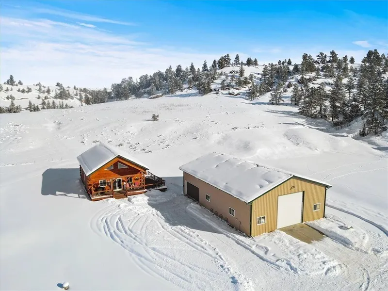 Experience life under the Big Sky with this stunning 2660 sq. ft. log cabin on 23.80 picturesque acres backing up to state land, all completed in 2022. It boasts a charming wraparound deck, soaring vaulted ceilings, elegant custom kitchen cabinetry, & an inviting open concept living space. The main floor offers a serene primary bedroom with a spacious walk-in closet, convenient laundry facilities, & ample storage or pantry space. Upstairs, you'll find a cozy, intimate family room perfect for relaxing evenings. The partially finished basement features a newly carpeted bedroom & a newly finished bathroom, adding to the home's versatility. Enhancing this property is a magnificent 40x60 heated & insulated shop with new metal panel walls & a large storage mezzanine. The shop includes a finished, heated bedroom, another partially finished bedroom & bathroom, offering additional comfort and functionality. Additional updates & amenites list available upon request. Prof. pictures to follow.