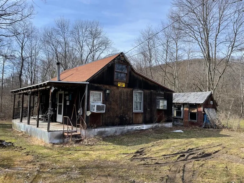Looking for your private hunting retreat or family get-away? This 890 sq. ft. cabin has 2 bedrooms, 1 full bathroom, a large kitchen and dining/living room combo. It has a wood stove, electric, septic and well. There is natural gas connection available. Upstairs leads to a small attic area which is used as a third bedroom. The wrap-around porch allows for family BBQs and enjoying the sounds of the year-round running stream just behind the cabin. The cabin is located roughly 185 feet from the road. The property is mostly level with some slope on the north side of the property. There has been a recent select cut with plenty of firewood available. Heavy-flowing stream runs through the property which is great for the kids on those hot summer days. Whitetail deer sign throughout makes this an excellent tract to hunt.