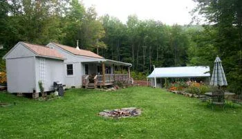 This charming compound has the privacy, views and acreage you need to escape the City pressures and stresses and have plenty of room to play. The 2 BR 1 BA cottage with EIK and LR also has a wide covered porch to enjoy those long summer days under cover, whether it rains or shines, and you'll appreciate the garage/studio building which is insulated and useful for whatever your heart desires. The land is "out there" -- good skimobile or ATV country, or simply enjoy the buffer from the world. The lawn is nicely landscaped with charming perennial gardens, and also has raised bed vegetable gardens screened and protected from animal interlopers. Also includes a nice fenced area for your dog.