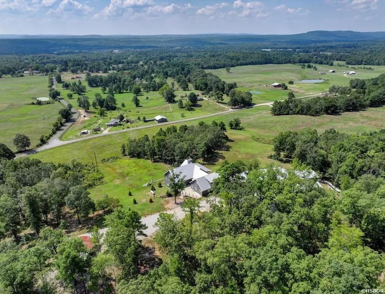 Custom-Built Home on 23 Acres | Lake Hamilton School District | RV Garage & Workshop Spectacular custom-built home situated on approximately 23 acres in the Lake Hamilton School District, offering expansive views and memorable sunsets from the deck and stone patio. This well-built 4-bedroom, 4.5-bath residence features vaulted ceilings, thoughtful design, and construction focused on durability, comfort, and security. Built with 12-inch concrete walls, the home includes two primary suites on the main level, two laundry rooms, and a dedicated safe room. The open layout provides generous living space, complemented by a large game room ideal for entertaining or recreation. Garage and workspace features include a 3-car garage, a separate RV garage, totaling approximately 2,761 square feet of garage space, plus an 894 sq. ft. heated and cooled workshop. A whole-house generator adds reliability and peace of mind. Privately located yet conveniently positioned approximately 30 minutes from Oaklawn Racing & Casino and Lake Ouachita, this acreage property offers space, functionality, and flexibility for a variety of uses. A rare opportunity to own a custom home on acreage
