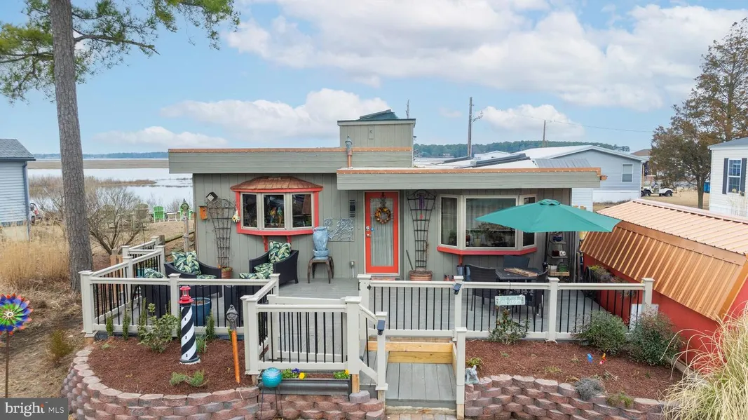 Motivated sellers! Bring all offers! Your own waterfront oasis! This 2 bed 2 bath home sits directly on the water with gorgeous views of the bay. Stepping in you will immediately notice the high end finishes and luxury vinyl plank flooring throughout the house. The kitchen boasts new Samsung appliances (2022) with a built in microwave, french door refrigerator, and a propane oven/range. The custom designed kitchen was completed in 2022 with new solid surface countertops, farm sink, and a roll away island. The spacious living room offers tons of natural light from all of the windows and beautiful views of the bay. The living room is complete with a new modern vented fireplace. The house is heated and cooled with ductless mini-splits throughout the house which were recently installed in 2022 and come with the remainder of a 10 year warranty! The large primary bedroom has an en-suite primary bathroom and access to the laundry. The second bedroom also has an ensuite bathroom that was redone in 2023 with tile flooring, a mission vanity with Michaelangelo quartz countertop and a custom made vessel sink. There is ample outdoor living space with a large front porch and back porch featuring views all around of the bay and wildlife. Both decks are also securer for dogs with a gated fence! The vinyl and aluminum railing were installed in 2023 as well as the cedar pergola on the back deck. In addition the back deck has a brand new hot tub to enjoy the beautiful sunsets over the bay! Enjoy this waterfront oasis with many updates including: fireplace (2021), American Woodmark kitchen (2022), new HVAC (2022), new kitchen appliances (2022), new hot tub (2022), LVP floors (2022), cedar pergola (2023), updated bathrooms (2024), and ample outdoor living space! Located in the Rehoboth Shores community you have access to all of their amenities including a pool, pier, and a beach! This location is also right in the heart of Long Neck, close to shopping, prestigious golf courses, and the Delaware Beaches! Schedule your tour today! Being sold as-is.