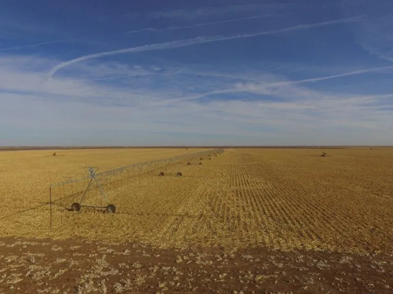 This large, contiguous, 2,299.80 +/- acre farm has existing irrigation with the potential for further development. There are currently 325 +/- acres under four pivots. Three irrigation wells are in production providing 1,550 +/- gpm per operator (4.77gpm/irrigated acre) and an additional two wells on the north side can be tied in at any time. Several test holes have been drilled across the property with positive results. The irrigation on this farm was recently developed for the 2017 growing season, with the majority of the improvements being new.