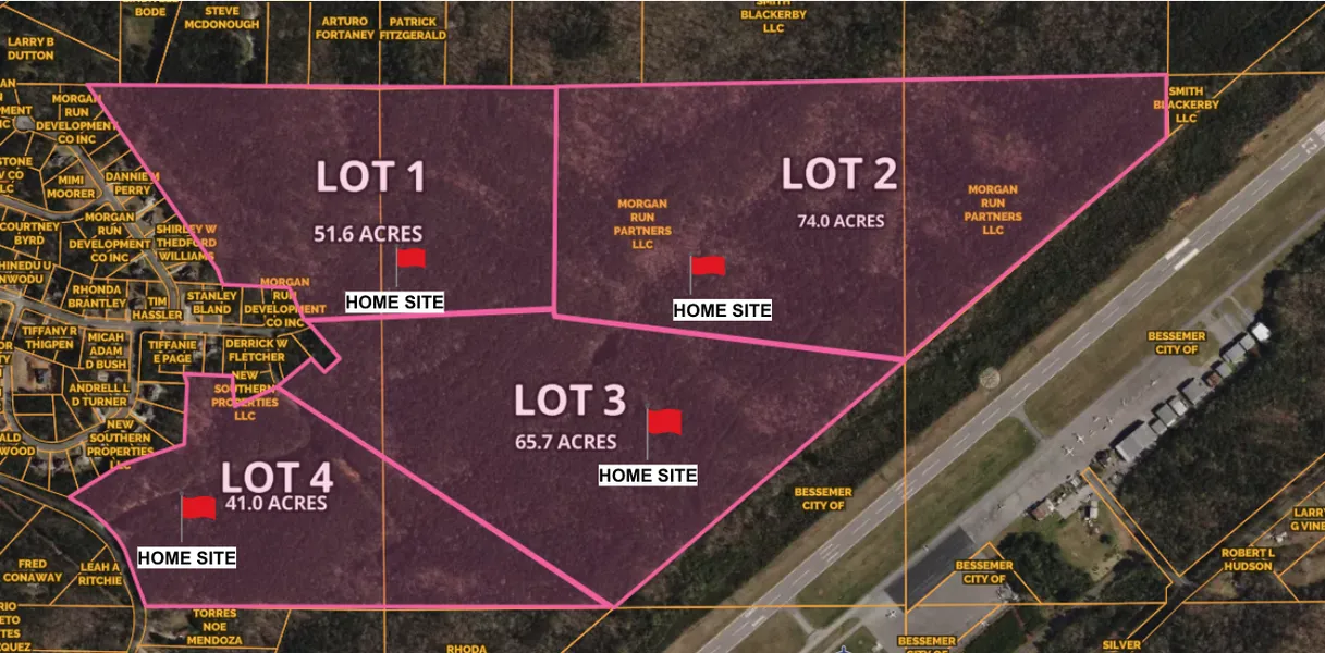 Take I-459 Exit 1 and head south on Eastern Valley Road toward Tannehill. After approximately 2.5 miles, turn right onto McCalla Road, then travel about 1.2 miles and take a left onto Old Tuscaloosa Highway. Continue for 0.6 miles before turning right onto Morgan Road (CR-52). Drive about 1.5 miles, then turn left onto Morgans Run Parkway. The property is located near the end of the parkway in a quiet, undeveloped section.