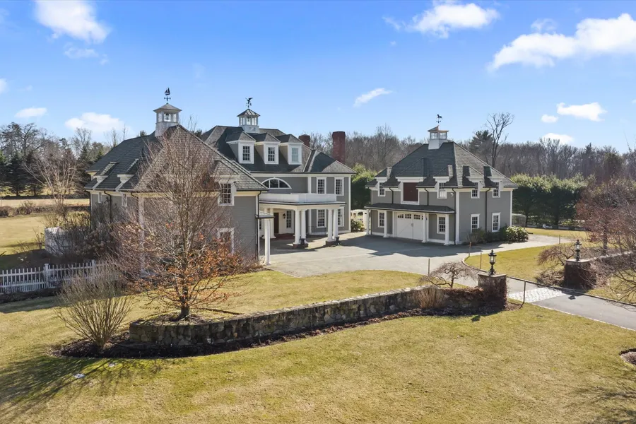 Exquisite Custom-Built Luxury Estate in Prime Westwood Location. Experience unparalleled luxury and sophistication in this stunning custom-built Colonial set on three lush acres in highly desirable Westwood. Just minutes from Boston, this 9,060 sq. ft. estate seamlessly blends elegance, modern comfort, and sustainability. The grand. interior features five fireplaces, radiant floor heating, and geothermal heating & cooling, ensuring year-round efficiency and comfort. Designed for entertaining, the gourmet chef’s kitchen boasts a Blue Star propane cooktop, Thermador double oven, and Subzero refrigerator. The first-floor study, adorned with mahogany coffered ceilings and Brazilian cherry floors, exudes sophistication. Retreat to the primary suite, complete with cherry flooring, spa tub, and marble shower. The lower level is an entertainer’s dream with a mahogany bar, home theater, and game room. Outdoor spaces include an apple orchard, koi pond, bluestone patio w/ fireplace and barn.