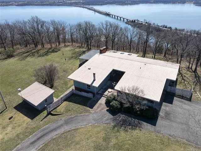 Waterfront Investment Opportunity! 233 acres m/l just outside city limits with gorgeous expansive views of Lake Eufaula. Just minutes from town, this property has some Hwy 9 road frontage and would be the perfect location and opportunity for development. Private, winding paved road into the property and with existing older home, utilities are in place. The home consists of 3 bedrooms with views of the lake, 3 baths, partial finished basement, two enclosed patios, small storage building and a nice insulated shop with electricity. Heavily wooded property with one pond.