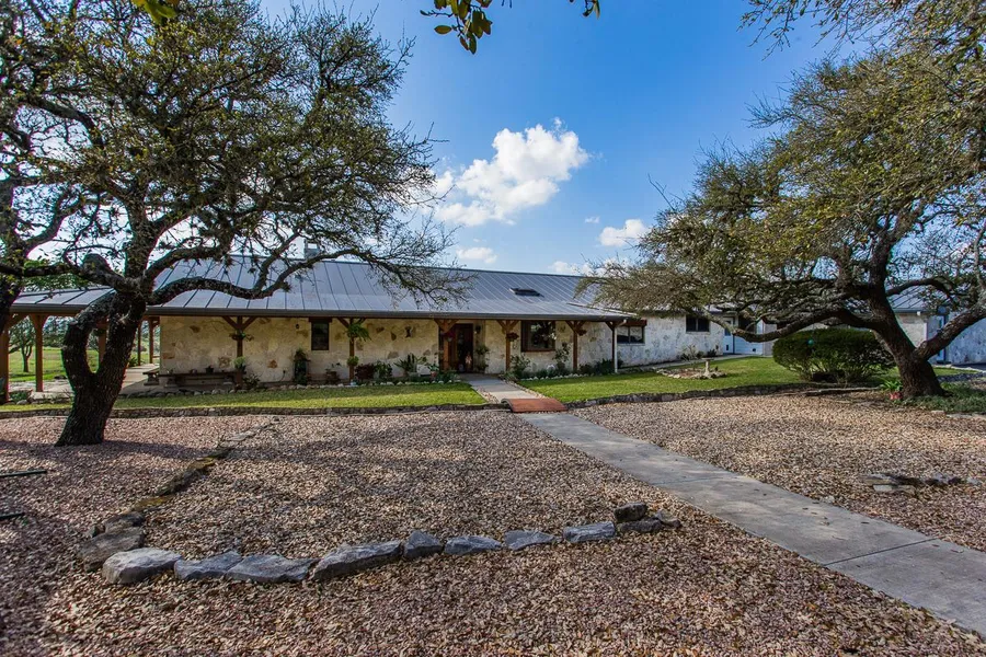 Just east of Kerrville, TX and minutes from down town. This Hill Country four bedroom three and a half bath split plan rock home on 16.84 acres offers a wonderful and relaxing place to hang your hat. Located in prestigious Creekwood Ranch Estates, this property is ten minutes from downtown Kerrville, but outside the city limits. Enjoy the salt water pool and beautiful views from the covered porch overlooking Riverhill and the city.