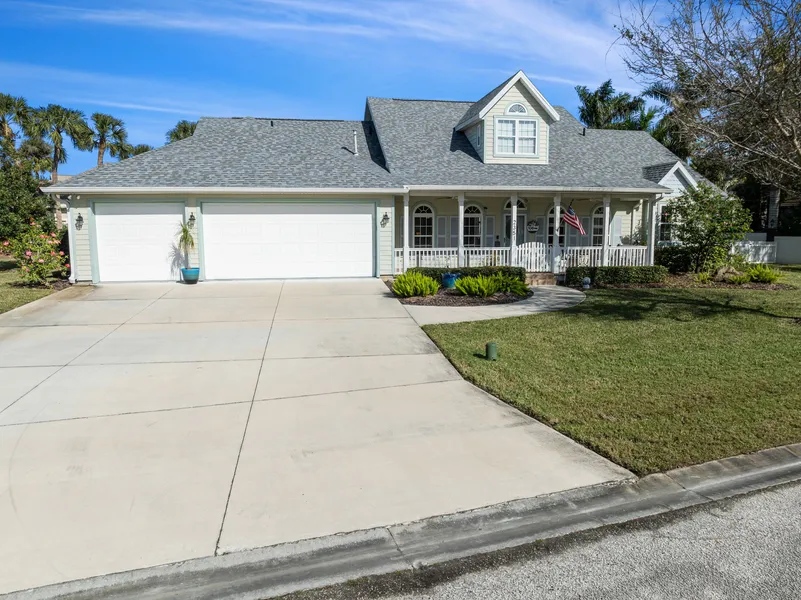 Welcome to this custom-built Craftsman-style home in the highly sought-after Stonebridge neighborhood, just off Rockledge Drive. This 3-bedroom, 2.5-bath home features a spacious bonus room, perfect for a game room or office. The open-concept family room is warm and inviting, with a gas fireplace that can easily be converted to wood-burning. The chef's kitchen boasts solid surface counters, a granite island, and a charming wood hood. Enjoy serene views of the Indian River from your front porch rockers or stroll just a few feet to the community dock. ''Step outside and unwind in the screened-in pool, featuring a brand-new paver deck and a heated pool with a heat pump. The oversized 3-car garage offers ample space, while the reinforced floors in the bonus room is perfect for a pool table. Additional features include double-pane windows, newly poured triple driveway, oak laminate and tile f...