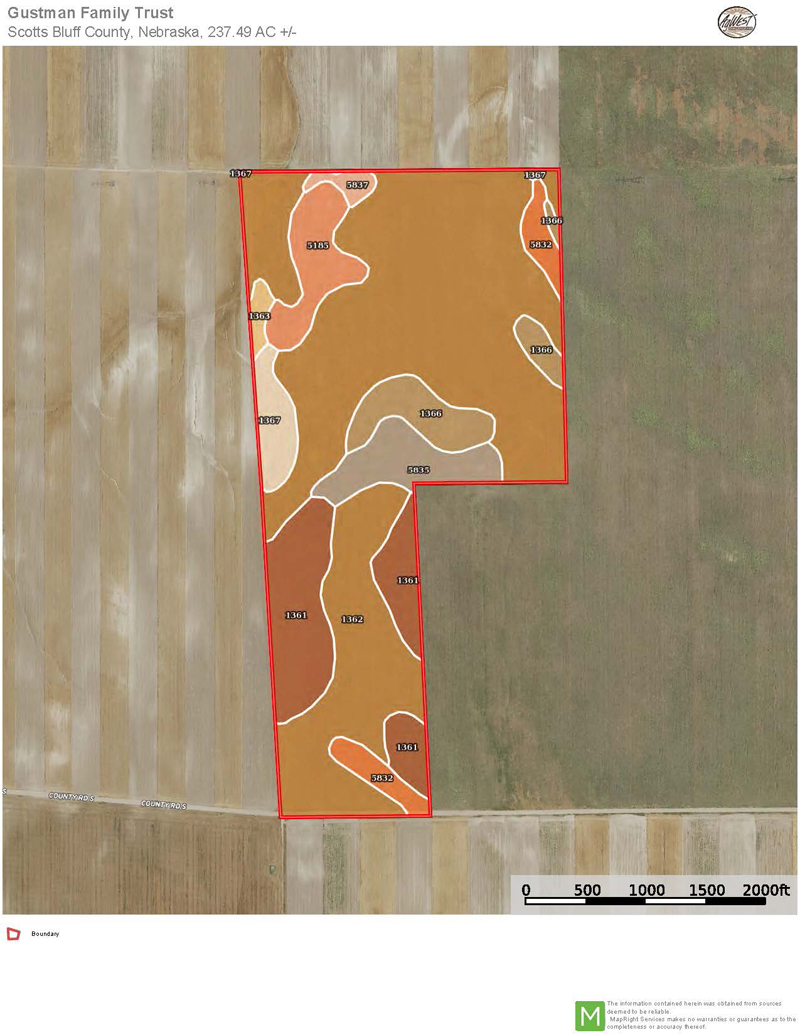 This land also presents excellent recreational hunting opportunities with deer and upland birds! Sitting just off the line of the Wyoming border, this farm is located approximately 11 miles south of Lyman, NE off of County Road S. This farm lays exceptionally level and smooth across the entire 237.49+/- acres and offers a majority 178 +/- acres of productive sandy loam class II soils along with around 40 +/- acres of class III sandy loam soils.