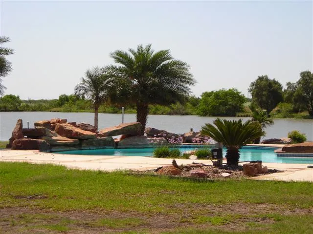 Description: An incredible live water high-fenced ranch on the Petronilla Creek was once part of the famous King Ranch and Chapman Ranch. There are seven fenced pastures with a wide variety of exotics, a large fenced garden area, pens for peacocks, chickens, or other smaller animals. A beautiful piece of real estate offering all types of water activities on a 26 acre lake with many inlets and peninsulas. A nice home with relaxing pool with a waterfall is located in a large irrigated, manicured lawn which borders a gorgeous 26 acre lake.
