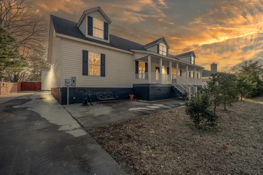 Experience the perfect blend of comfort and convenience in this traditional-style home, quietly nestled on a .50 acre lot. Inside, enjoy an open floor plan downstairs that includes a office area with built in cabinets, perfect for someone needing to work from home. The kitchen boast a large center island and a commercial size refrigerator. The primary suite, also located on the first level, consist of a walk-in closet with built-in custom shelving and a nicely sized bathroom where you will enjoy a huge shower. Upstairs features 2400 sqft to include two spacious bedrooms, a beautiful bathroom, and ample extra space which could be used for entertainment area/another living room. Outside, this home includes an electrically operated gate for added security and a remarkable 1,400 sqft detached commercial-style garage with three oversized bay doors and a car lift ideal for projects or business. Located in downtown Great Bridge, this home offers tranquility, style, and convenience.