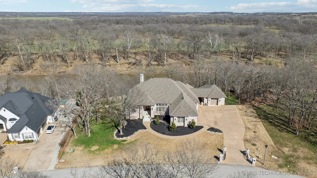 Perched on a bluff with an expansive deck overlooking the Verdigris River, this former builder’s personal home is truly a destination property. Discriminating buyers will appreciate this 4 bed/2.5 Bath/5 Garage one level design loaded with upgrades. 1.2 acres +\- Trex Decking, lovely landscaping, & firepit. The home has newer roof, HVAC, recirculating hot water tanks.