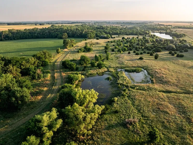 90 Acres of Mature Timber: Towering oak, walnut, catalpa, elm, hedge, and cedar create thick cover, natural corridors, and bedding areas that hold deer year-round. The diversity in timber, shrub, and grass species supports a rich ecosystem that benefits not only deer but turkey, quail, and waterfowl.