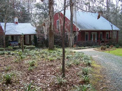 This unique 25+/- property welcomes you the moment you enter the gate and travel down the canopied drive. The main house offers a fantastic front porch that overlooks the cypress lined pond. The main residence is beautifully crafted with reclaimed heart pine flooring and wainscoting. A large fireplace with pine raised panels and mantle greet you as you enter the house into the living room. Just beyond the dining area, a screened porch invites you to sit an enjoy the private views of the wooded area and wildlife that thrive along the banks of Barnetts Creek (which creates the southern boundary of the property). The gourmet kitchen features custom pine cabinets, solid surface countertops, gas range, and subzero refrigerator. The sunroom is located immediately off of the kitchen and provides a wonderful area to enjoy a morning cup of coffee. The downstairs master suite has pickled magnolia paneling and a large walk-in closet, while the bath features double vanities, shower, and a traditional clawfoot tub. Upstairs are two additional bedrooms, a full bath, and great storage. The recent addition of a barn on the property provides both form and function. The downstairs consists of two large garage bays, a three run dog kennel, and gracious storage. Currently the upstairs serves as an office as well as a separate guest bedroom with a full bath. Skylights and windows bring in wonderful natural light to this well designed space. The barn caters to dog and horse enthusiast and also offers a large, fenced exercise run adjoining the kennels. All said, the property contains a fenced area consisting of approximately five acres. This property denotes a life well lived and is sure to appeal to those individuals who appreciate architecture, dogs and horses, and a general love of nature. Please call listing office for additional details on this exceptional property.