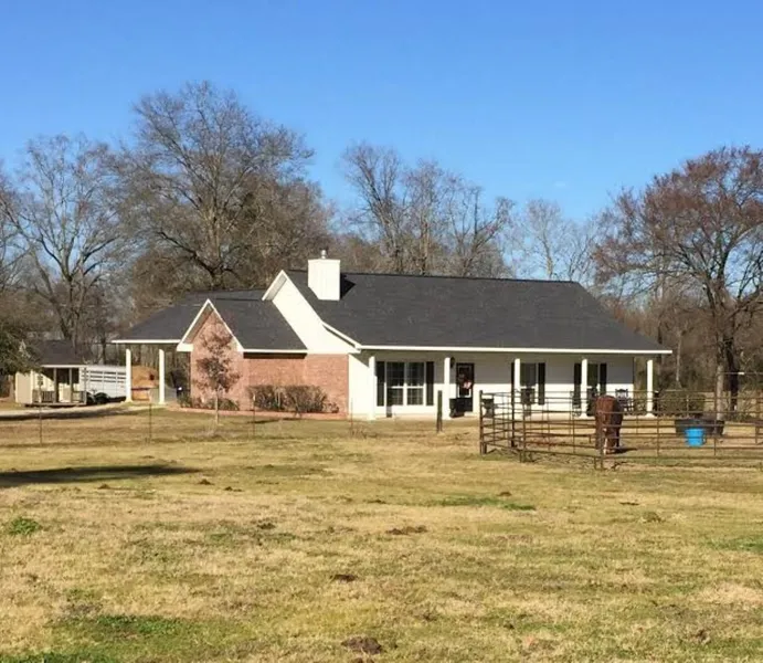 Front porch invites you to this lovely custom brick 3-2 1/2 home on 24+ Acres. An open floor plan the family loves. large liven den with handsome wood burring fireplace. Gather in the roomy kitchen or lounge at the comfortable breakfast bar. All kitchen appliance remain. Light and bright throughout. Perfect decor, great floor plan. There is a two car carport on slab, an equipment shed (20x30), storage building, playhouse now serves as a tack room. Mostly open acreage is fenced and cross fenced.