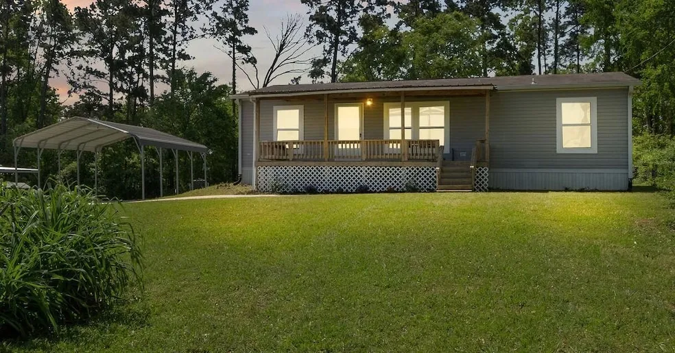Water view! Like new, renovated 3-bedroom 2 bath, 1,232 sf home with a split floor plan on a .56-acre lot. Fresh paint; new: LVP and carpet; lighting, and ceiling fans. Kitchen - lots of cabinets, an eat-at island with built-in storage, and beadboard; new - stainless appliances; and counters; opens to roomy dining and living areas with views of the back yard. Roomy primary with a water view; walk-in closet; and en-suite. Entertainment ready inside and out! Covered parking with a long, double wide, concrete drive for ample guest parking and a concrete sidewalk leading to the large front porch; concrete steps lead to the back porch and a large back yard. Located in Bayou Lanan Subdivision; a nature oriented, wooded area in the Toledo Bend area, just off Highway 191, and minutes to