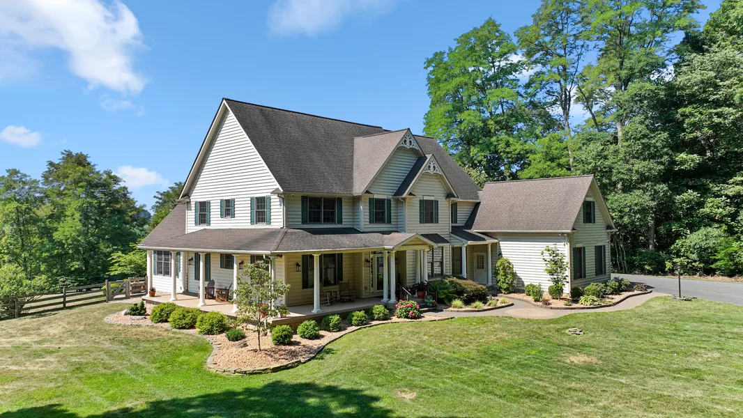 Spectacular long-distance vistas are yours in this special corner of Lehigh County. Open land, edged in evergreens and deciduous trees, provides endless seasonal views. Meander down a long, private, wooded lane that leads to a 4+ bedroom custom home on 24+ acres. The front entrance features a small Koi pond with water feature, a complement to the amazing wraparound porch that is calling your name. Beautifully maintained and updated, this home offers ample living space with graciously sized rooms, including a formal living and dining room. A great room with vaulted ceiling and arched windows also has a floor-to-ceiling stone-faced fireplace, ready for the cooler temps. A sunroom provides convenient access to an expansive stone paved multi-level patio and gardens, the perfect setting for outdoor living, entertaining and dining. An open, gourmet, eat-in kitchen features a center island with...