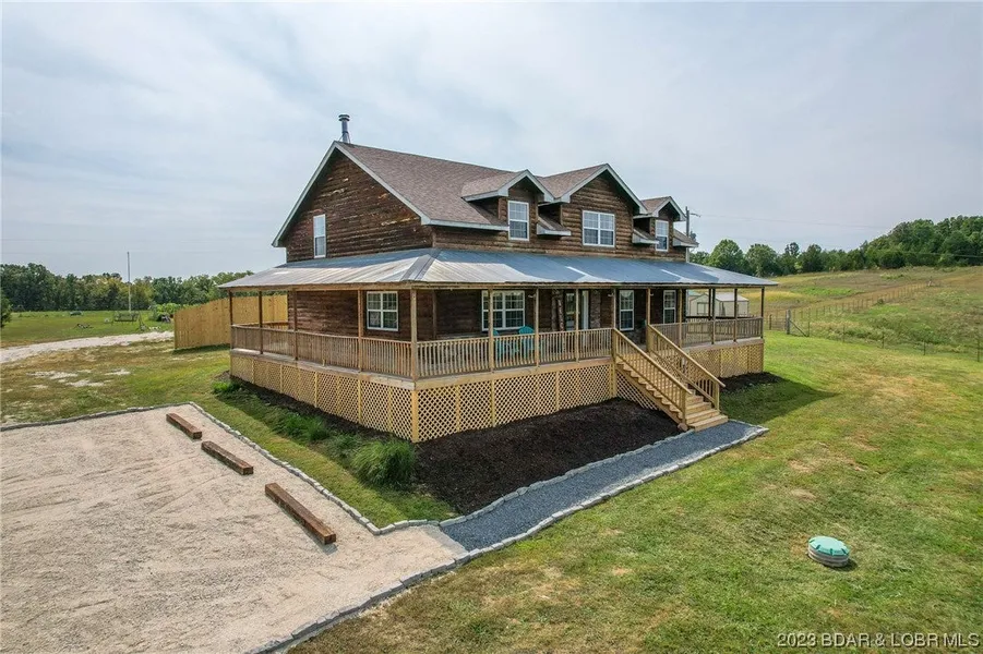 Situated on over 22 acres of rolling countryside, this alluring 4 bedroom, 3 bathroom home has it all. Constructed with American PolySteel from foundation to ceiling, offering value with extreme durability, energy efficiency, and it’s mold & termite resistant! Entering the warm living area, you’ll find soaring vaulted ceilings, new flooring, an abundance of natural light, and a stunning stone fireplace. The main level also has a generous master bedroom, kitchen with large pantry, dining area, mud room, and laundry room. Upstairs has 3 additional bedrooms (one nonconforming, no closet.) Simply relax on the covered front porch, as you take in the peace and tranquility, a great hobby farm. Other exterior features include a spacious 1,264 Sq Ft wrap-around deck, a private pond, plenty of building sites, and a charming 100 yr old barn. Located 15 minutes from shops, in School of the Osage District, and minutes away from the LOZ State Park. Watch the video, then Call to see this today!