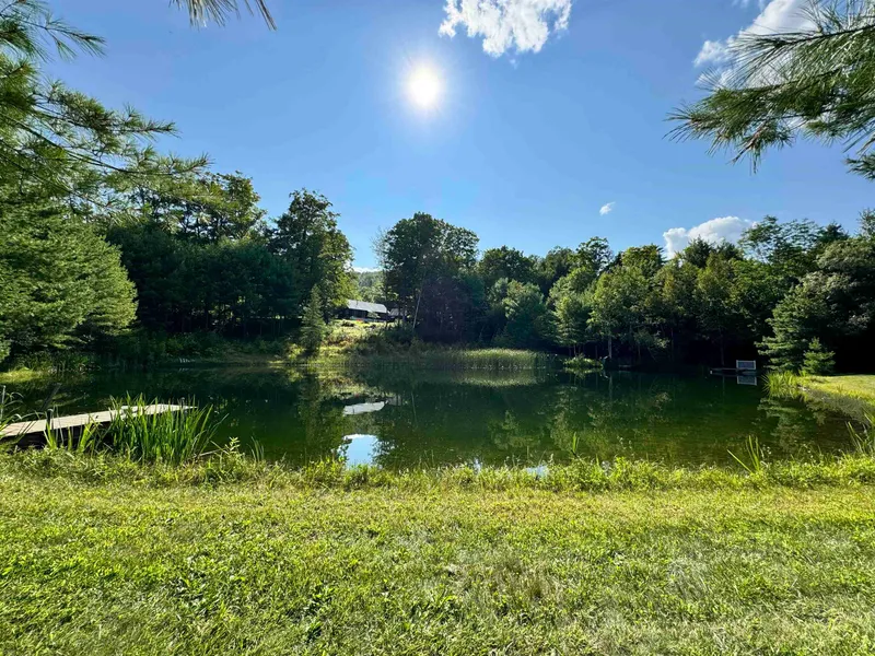 Welcome to your own private paradise in Bradford, VT! This stunning property sits on 24.7 acres of land, featuring a tranquil pond, beautiful mountain views, river frontage along the picturesque Waits River, a combination of open landscaped space around the house and pond with apple, pear and plum trees along with a large portion of wooded acres leading down to the Waits River. Enjoy exploring the expansive grounds with trails throughout the property, to ride ATVS, horses, or walk and explore! The house itself boasts an newly updated kitchen with all new appliances, ample sleeping space including built in bunks on the 2nd level, a living room with vaulted ceilings, a wood stove, and large windows that bring in ample natural light and allow you to see the pond and mountain views right from the couch! The property also features a large garage/workshop for all your projects and storage needs. Whether you're seeking a peaceful retreat or an outdoor enthusiast's dream, this property offers it all. Don't miss your chance to own this slice of Vermont heaven in Bradford!