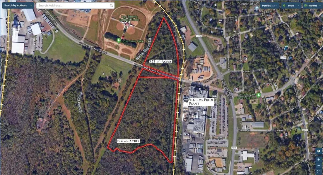 5.75 +/- acres lie to the north of MLK Jr. and another 19.6 +/- acres lies to the south of MLK Jr.