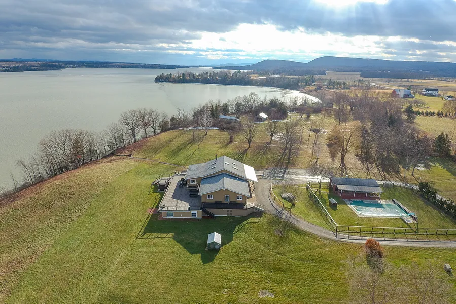 Enter this gorgeous estate through a stone gateway. 1500 ft of direct waterfront on Lake Champlain. 24 plus acres meticulously landscaped property boasts a 60x40 pole barn with additional 4 equipment open bays, a detached garage and an attached 4 space garage. A fenced in, inground pool with cabana house and plenty of play space.