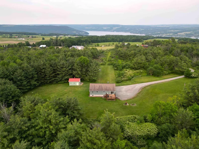 A well-kept gravel drive leads back off the paved road to this home with a basement garage and a 20 x 24 barn. Comprised of nearly 1,400 sq. ft. of living space, the home includes two bedrooms and two bathrooms. The open floor plan is perfect for entertaining, and the large closets in each bedroom provide plenty of storage. The kitchen features ample counter and cupboard space, along with a spacious breakfast bar area. Enjoy the peace and quiet of this very private home and take in the breathtaking views of Keuka Lake and the surrounding hills.