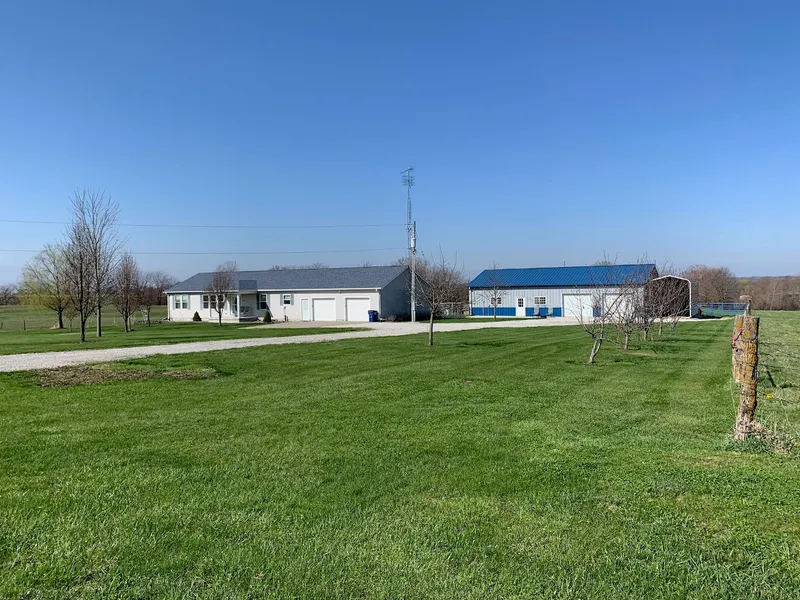 Come enjoy the country life with 24 acres m/l just a few minutes east of Trenton. Over 1800 square foot of living space on the main floor of this newer ranch home. The main level features an open concept for the living, dining and updated kitchen, as well as a spacious master bedroom, master bath with a garden tub and an onyx walk in shower, two additional bedrooms, a full bathroom and laundry/mud room as you come in from the garage. There is a full dry basement ready to finish as you like or provides plenty of room for storage. If you are looking for a nice building, this one will get your attention! It is a 36x60 Morton metal building with concrete floor, two overhead doors, electric, sewer, water, a 12x40 heated & cooled room, plus a 15x60 enclosed overhang on the back side with six garage doorsWOW! Another highlight to this property is the 48 solar panels that produce the majority of power needed for the house and building. Great location with fenced pasture for cattle or horses, as well as a nice sized pond.