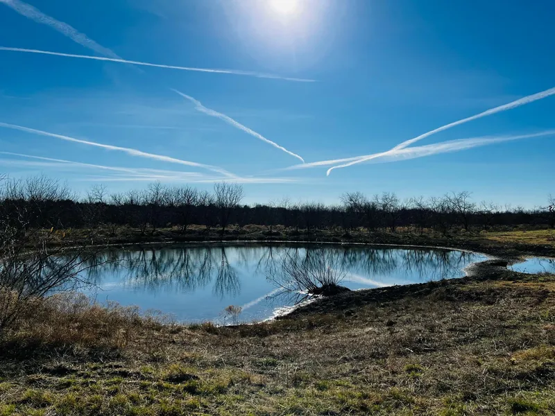 Offers a creek running through it, an elevated building site overlooking the pond, coop water and electric available at the road, and nice trees along the creek. Some mineral rights will convey and no restrictions.