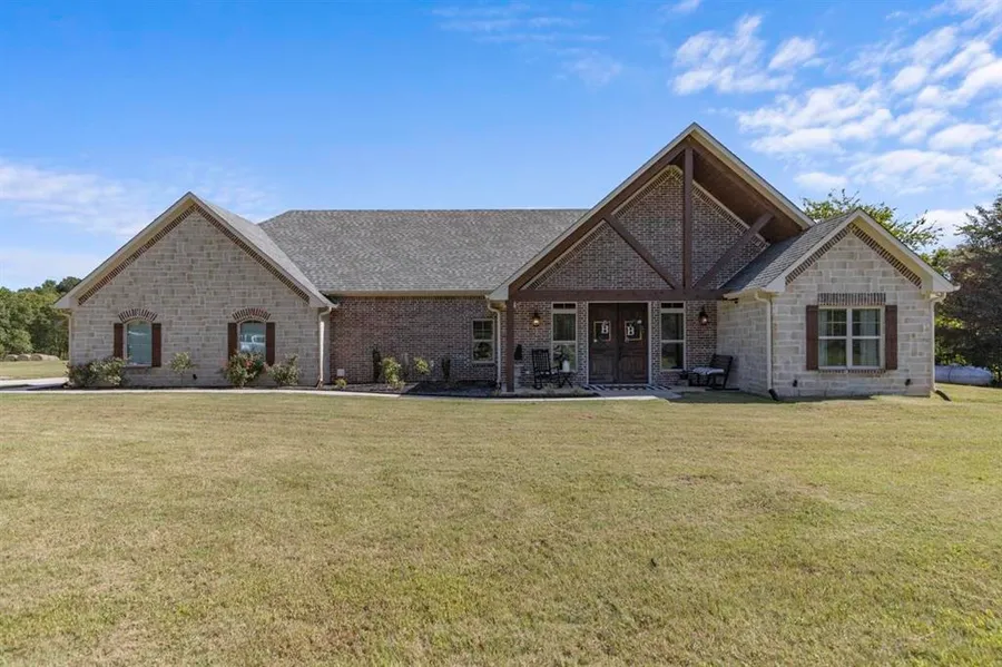 Check out this gorgeous custom Wright-Built home with a shop! Settled on 24 acres, this home features 2,363 sq.ft., a master split open-concept floor plan with 4 bedrooms, 2 full baths, 1 half bath, and a 2 car garage. When entering the home through the double wood front doors you are welcomed with an abundance of natural light and beautiful stained concrete floors throughout. The main living is the center and heart of the home, perfect for entertaining, and features a vaulted ceiling with large custom wood beams, gorgeous floor to ceiling stone fireplace with gas logs, large windows and french doors with access and views to the back yard. The formal dining is right off the living and kitchen. The kitchen is a showstopper! The custom wood feature wall was all handpicked along with the unique custom chandelier hanging above the island. The kitchen features custom cabinetry, farmhouse sink, an island/breakfast bar with leathered granite countertops and a gas cooktop, copper countertops, black stainless steel appliances, double oven, and a SPACIOUS pantry! Right off the garage entry are built in lockers. The master suite features a large walk in closet, his/her vanities, a sitting vanity, separate water closet, granite counters and a beautiful tile and glass shower with a bench seat. The 4th bedroom is being used as a game room. but could also be used as an office or craft room. The other two bedrooms have good size closets and have their own separate vanities, and share the shower/tub. The back patio features a built-in sink and counter, perfect for grilling & cooking outdoors! The shop has a 30x40 interior, 20x40 porch off the back, full bath, and septic system separate from the home. The acreage has a stocked pond and is mainly pasture, with some wooded areas. Perfect for livestock! This property is gorgeous! Come take a look before it is too late!