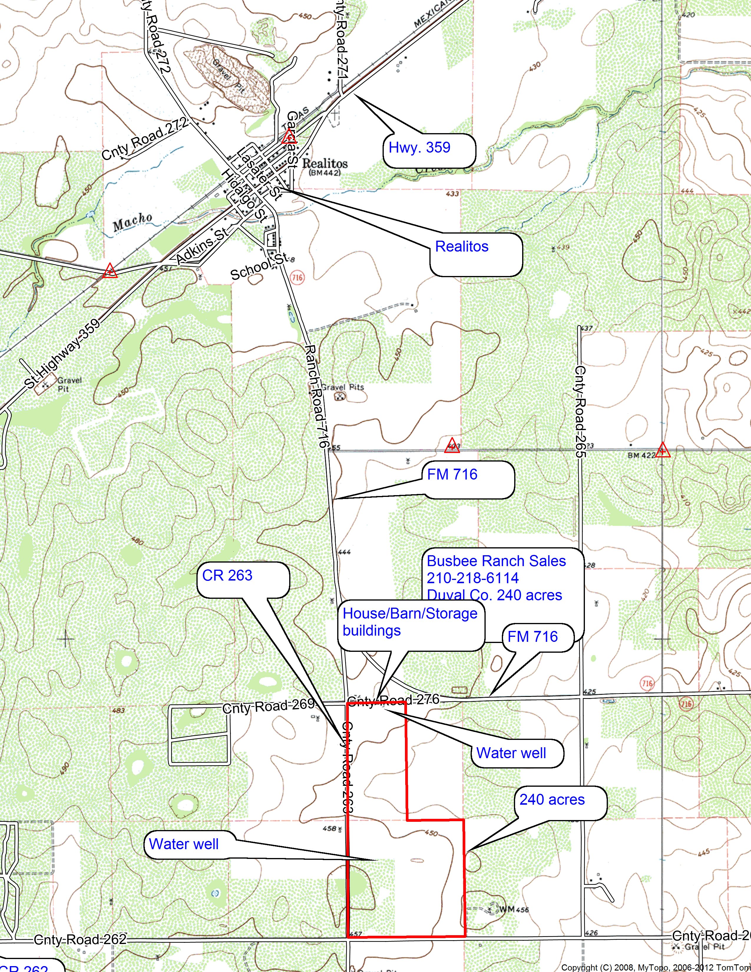 Location: The property is located northeast of Hebbronville approx. 12 miles, at the intersection of CR 263 and CR 262 (on the southeast side). The property is near the border of Jim Hogg County and about 5 miles South of Realitos.