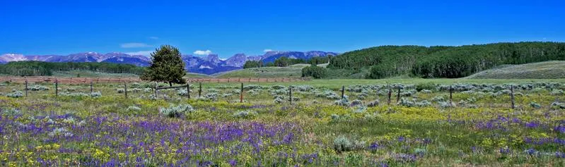 Loomis Park Ranch is a 240-acre recreational ranch located 1.5 hours from downtown Jackson Hole and just outside of Bondurant, Wyoming. Almost completely surrounded by the Bridger Teton National Forest, this unique property offers unlimited recreational choices in an alpine setting. The ranch is framed by aspen groves, pine forests, open meadows, and the granite faces of the Wind River Mountain Range. Hunt, fish, hike, horseback ride or snowmobile from your private 240-acre ranch onto millions of acres of National Forest and Wilderness lands. Wildflowers abound and wildlife includes elk, moose, mule deer, and pronghorn antelope.