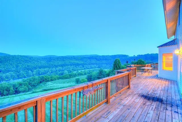 Grand Farmhouse home surrounded by mountains w/ spectacular views & relaxing sounds of New River! Home has 3225 sq. ft. of finished space & boasts 5 large BRs w/ large closets. It features Master on Main Level w/ French doors opening to an over-sized deck w/ Master Bath that has a 10 jet, multi-function Jacuzzi Spa Tub & separate shower. There is also 2nd Master Suite upstairs w/ 3 other BRs. All full baths have tiled flooring, double vanity sinks & full body dryers. There are new & refinished oak HW flooring on main level w/ new carpet in Den w/ freshly painted foyer & kitchen. LR has FP w/ gas logs & 2 inviting French Doors to wrap around porch! Large kitchen has wood cabinets & pantry w/ SS appliances. New HVAC unit installed inside on main level. Over-sized 2 car attached garage has extra storage space. Full walkout bsmt offers 1581 sq. ft of potential space for expansion w/ plumbing for 5th Bathroom (toilet & sink installed). Home equipped w/ outside woodstove/boiler. Must see!