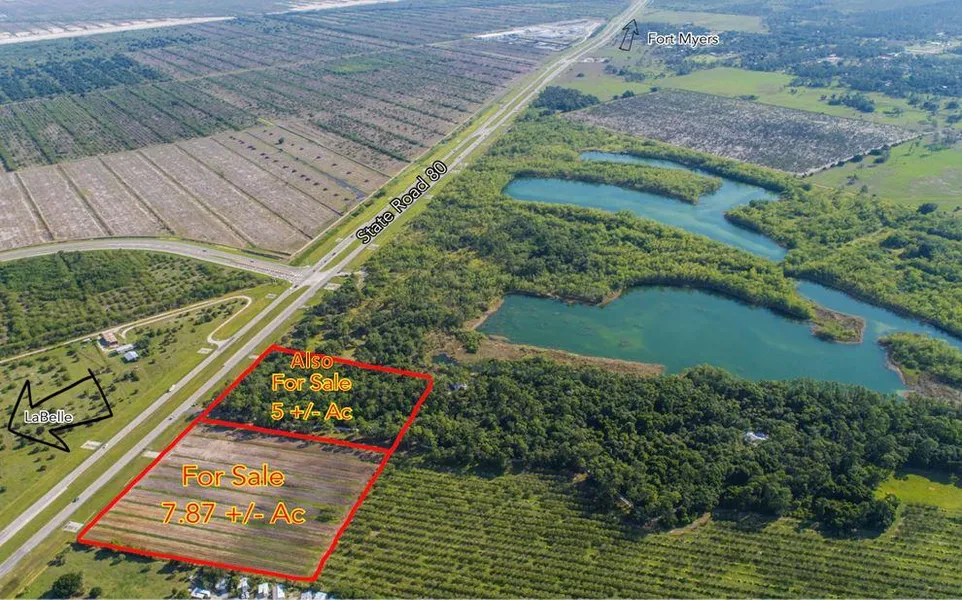 LOCATION: JUST WEST OF WALMART AND GRANDMAS GROVE RV PARK; JUST EAST OF NEW HELMS ROAD EXTENSION ROAD AND THE LEE/HENDRY COUNTY LINE (only 5 miles)! Currently zoned A-2 (Agricultural) for the ability to have an Agricultural Exemption on property you are holding or planning to develop into commercial until your project is underway. This tract boasts 550+/- feet on four-laned State Road 80, a main road into Fort Myers and the evacuation route for Fort Myers and Naples to the east coast in case of a storm. Definitely in the path of progress as people scramble to get out of the city and into country life. This location is only 30 minutes from downtown Fort Myers and 15 minutes from I-75. Property has a current survey. This west boundary is a 60 roadway that is split between the tract and the adjoining 5 acre tract to the west with each owning 30 and having a 30 easement over the remainder of...