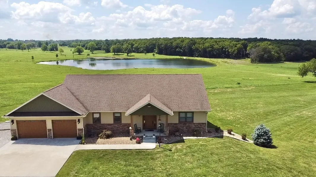 SPECTACULAR PROPERTY! Not sure where to start on this 241+ acre property! As you enter the secure entry, and start the winding drive to the custom home, you will realize how awesome this property is! From the covered front porch, you enter the large foyer to the open floor plan. The living area has a gas fireplace, walnut hardwood floors & French doors leading to a covered composite floor deck. The amazing kitchen features an island with a breakfast bar, & a gas cooktop. Gorgeous cabinets with granite counter tops, and pull out drawers. Other amenities include double wall ovens, a pantry, & a trash compactor. The dining area is large & has a view of the beautiful pond. The main floor master suite is spacious, and has 2 walk in closets. The master bath has separate vanities, a soaking tub, and a large walk in shower.The main floor also has a 2nd bedroom, a half bath, a sun room(no heat or air), and a laundry with a double utility sink. Lets take the stairs to the walk out basement where we will find a large family room with French doors leading to the covered patio which has an uncovered patio attached. Did I mention there are 3 more large bedrooms in the basement? The full bath has a walk in shower, and nice storage. There is also a storage room, a safe room, and a John Deere room on this level. With blacktop frontage, this versatile acreage features a 7 acre stocked pond, and the acreage is approximately 50% open - 50% wooded. Plenty of pasture for your animals and wooded acreage for hunting. Of course, there is a shop! The 30 x 50 insulated shop has concrete floors, is plumbed with a cleaning station, has 2 overhead doors, 2 walk in doors, and a lean to on the back that has RV hookups. Yes, there is a barn, also! There is even a green house, and a small fenced garden area. What to do if you lose power - just flip on the whole house generator! The seller will consider selling in 2 approx 120 acres tracts. House, pond, buildings to be together
