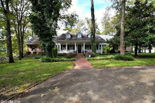 Beautiful Lake Mena home with almost 3 acres. On the Lake with Mountain views, attractive entrance and fenced along county road. Guest house with deck overlooking lake, detached garage, front and back porch, deck, pool and attached carport, even a putting green. 3 docks, one with gazebo. Chefs kitchen w/ high end appliances, sunroom, formal dining, and tons of storage and built ins. Entertainment system included in sale, wired for sound throughout home & to deck. Square footage estimated to include upstairs